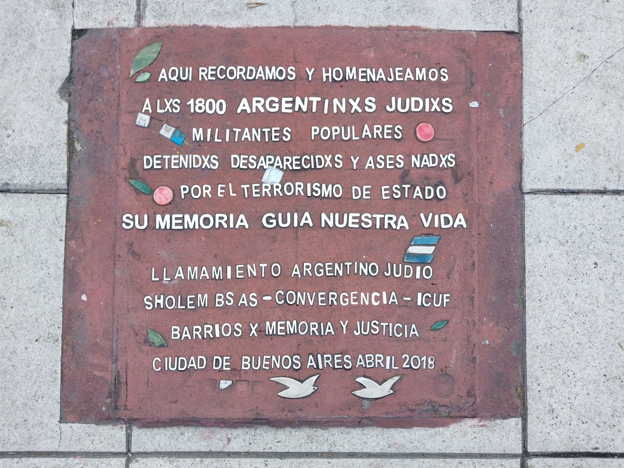 El 16 de junio de 2018, compañeros de varios barrios porteños colocaron una baldosa frente a la sede del ICUF-Federación de Entidades Culturales Judías de la Argentina, en homenaje a los 1.800 compañeros detenidos-desaparecidos de origen judío. La baldosa se colocó en Lavalleja 182, en nuestro barrio de Villa Crespo.