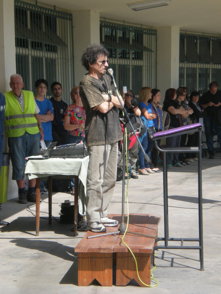 El compañero Alberto Barba, ex alumno del colegio, quien tuvo la iniciativa de colocar esta baldosa por Jorge y Cherif.