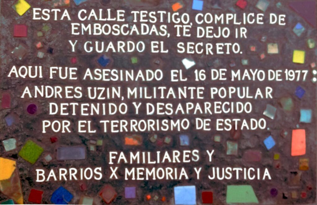 Con posterioridad supimos que junto con el cuerpo de Andrés Uzín, esa noche fue abandonado en la vereda de la calle Guzmán el de María Verónica Basco Solari. Otra baldosa pendiente.